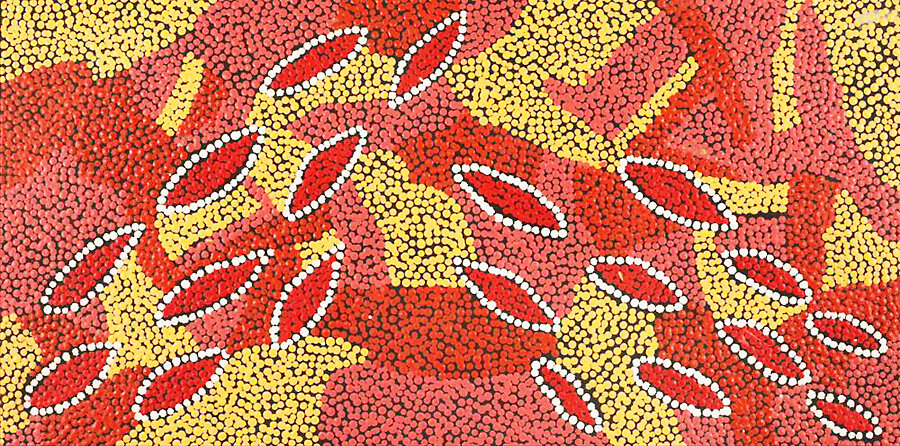 Marita Napanangka Marshall paints for the Warlukurlangu Artists Aboriginal Corporation located at the Yuendumu community 300km north-west of Alice Springs in the Northern Territory of Australia. Established in 1985, Warlukurlangu Artists Aboriginal Corporation is a fully Aboriginal owned and governed art centre with over 600 members. One hundred percent of the proceeds from the sale of all art works go directly back to the artists and their community projects.