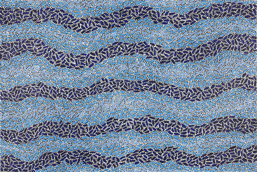 Nathania Nangala Granites paints for the Warlukurlangu Artists Aboriginal Corporation located at the Yuendumu community 300km north-west of Alice Springs in the Northern Territory of Australia. Established in 1985, Warlukurlangu Artists Aboriginal Corporation is a fully Aboriginal owned and governed art centre with over 600 members. One hundred percent of the proceeds from the sale of all art works go directly back to the artists and their community projects.