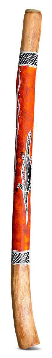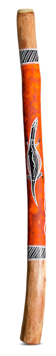 This didgeridoo is made from a native Australian Eucalyptus tree that has been hollowed by a termite and then worked on by the maker to turn it into an instrument.