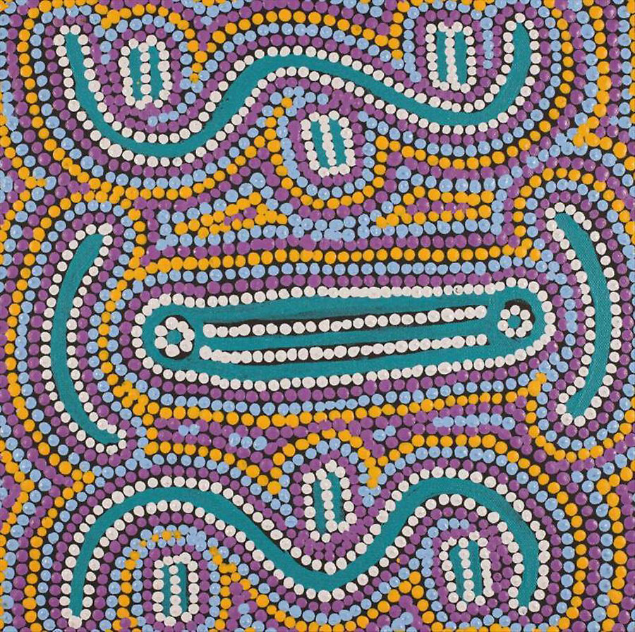 Renae Nakamarra Stevenson paints for the Warlukurlangu Artists Aboriginal Corporation located at the Yuendumu community 300km north-west of Alice Springs in the Northern Territory of Australia. Established in 1985, Warlukurlangu Artists Aboriginal Corporation is a fully Aboriginal owned and governed art centre with over 600 members. One hundred percent of the proceeds from the sale of all art works go directly back to the artists and their community projects.