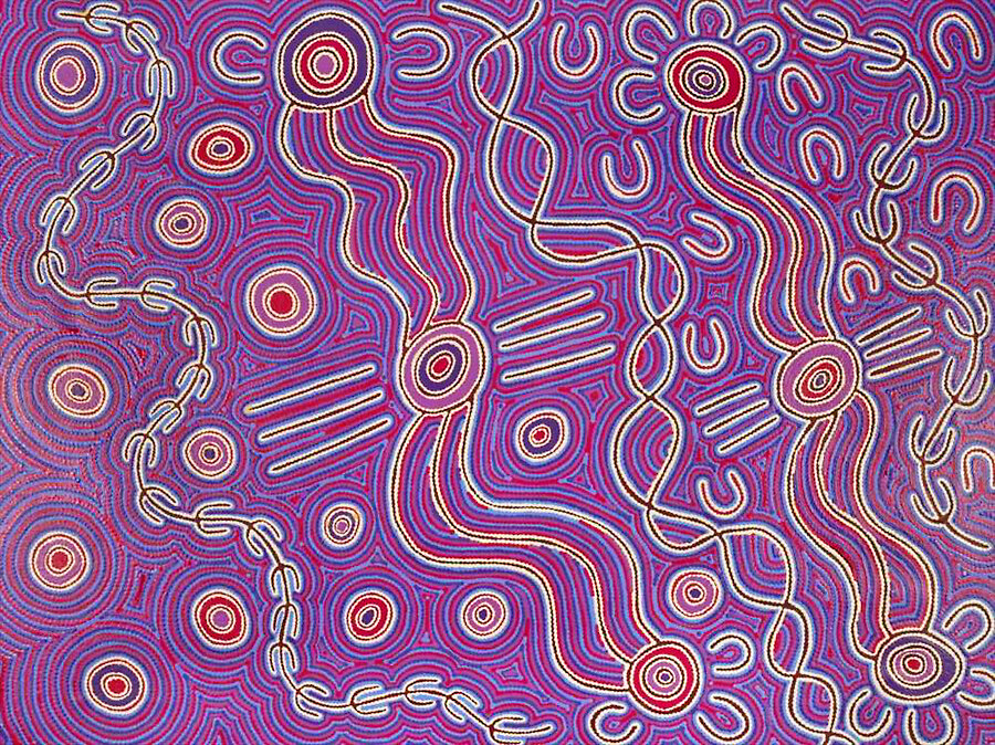 Madeleine Napangardi Dixon paints for the Warlukurlangu Artists Aboriginal Corporation located at the Yuendumu community 300km north-west of Alice Springs in the Northern Territory of Australia. Established in 1985, Warlukurlangu Artists Aboriginal Corporation is a fully Aboriginal owned and governed art centre with over 600 members. One hundred percent of the proceeds from the sale of all art works go directly back to the artists and their community projects.
