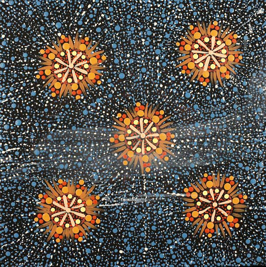 Jacinta Nampijinpa Dixon paints for the Warlukurlangu Artists Aboriginal Corporation located at the Yuendumu community 300km north-west of Alice Springs in the Northern Territory of Australia. Established in 1985, Warlukurlangu Artists Aboriginal Corporation is a fully Aboriginal owned and governed art centre with over 600 members. One hundred percent of the proceeds from the sale of all art works go directly back to the artists and their community projects.