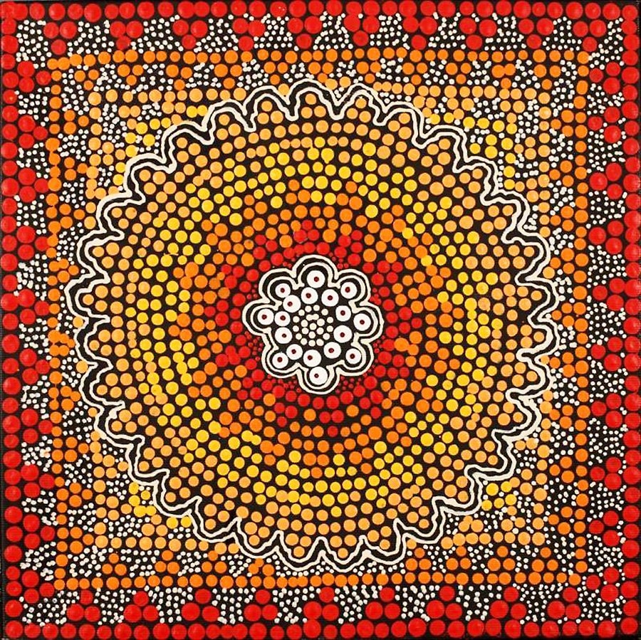 Janine Nampijinpa Brown paints for the Warlukurlangu Artists Aboriginal Corporation located at the Yuendumu community 300km north-west of Alice Springs in the Northern Territory of Australia. Established in 1985, Warlukurlangu Artists Aboriginal Corporation is a fully Aboriginal owned and governed art centre with over 600 members. One hundred percent of the proceeds from the sale of all art works go directly back to the artists and their community projects.
