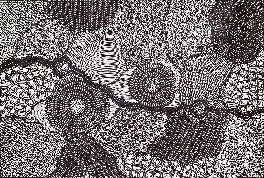 Her style is similar to that of her mother Anna with intricate dot work telling the story of her country in her sandhills style and has a great flare for colour as used in her Bush Yam style. Her Grandmother, the late Gloria (Glory) Ngale, was known for her eye for colour, a legacy of her Batik work, which she passed down to her daughters and granddaughters.