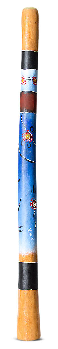This didgeridoo is made from a native Australian Eucalyptus tree that has been hollowed by a termite and then worked on by the maker to turn it into an instrument.