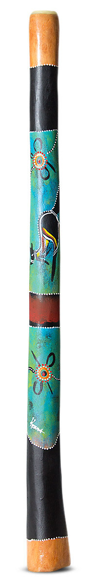 This didgeridoo is made from a native Australian Eucalyptus tree that has been hollowed by a termite and then worked on by the maker to turn it into an instrument.
