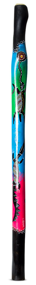 This didgeridoo is made from a native Australian Eucalyptus tree that has been hollowed by a termite and then worked on by the maker to turn it into an instrument.