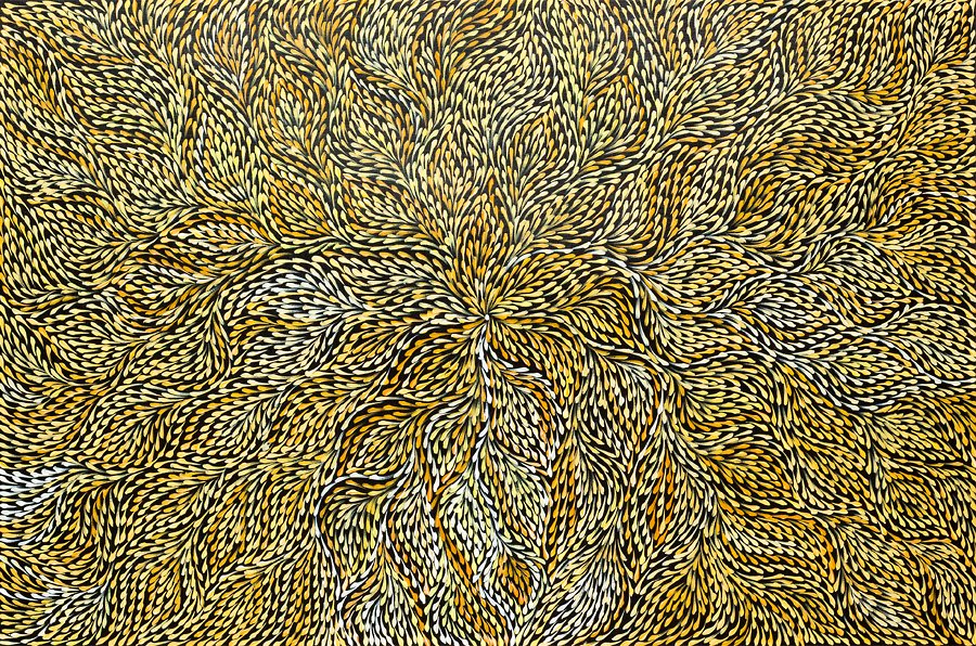 Roseanne learned from a young age the art of painting her dreamings, ceremonies and important bush foods onto canvas by watching her mother, aunties, and grandmothers.