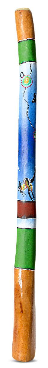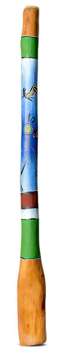 This didgeridoo is made from a native Australian Eucalyptus tree that has been hollowed by a termite and then worked on by the maker to turn it into an instrument.